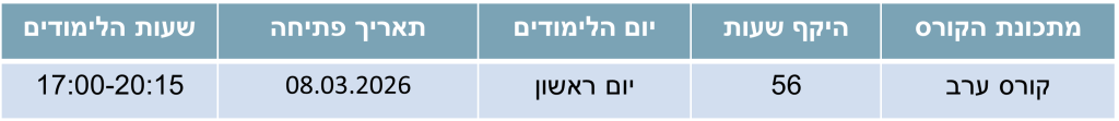 • לימודי ערב, יום בשבוע – מותאם לבעלי קריירה