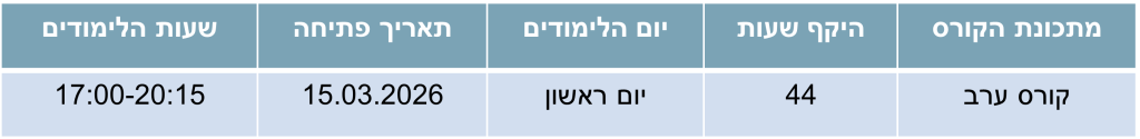 • הקורס מוכר למלגות בקרנות הידע השונות.