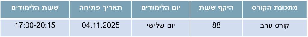 - לימודי ערב, יום בשבוע – מותאם לבעלי קריירה